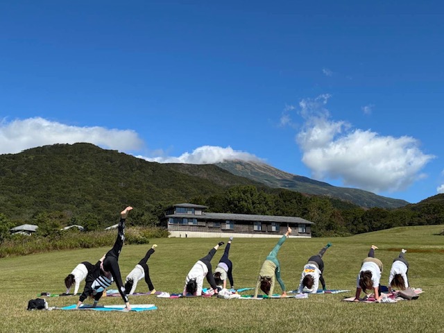 こんな清々しい空気と鳥海山の大自然を感じながらヨガをする!